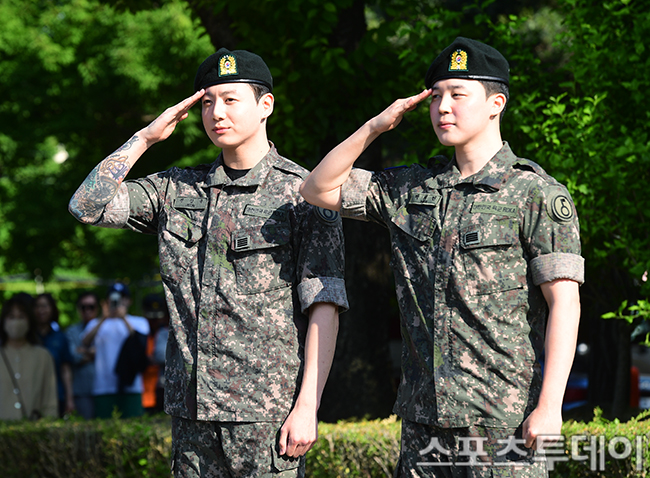 [¿¬Ãµ(°æ±â)=½ºÆ÷Ã÷Åõµ¥ÀÌ ±Ç±¤ÀÏ ±âÀÚ] ¹æÅº¼Ò³â´Ü(BTS) Á¤±¹, Áö¹ÎÀÇ Àü¿ªÀÏÀÎ 11ÀÏ °æ±â ¿¬Ãµ±º ¿¬ÃµÁ¾ÇտÀå¿¡¼ ¿¸° Àü¿ª½Ä Çà»çÀå¿¡ Âü¼®ÇØ ÆÒµé¿¡°Ô Àλ縦 Çϰí ÀÖ´Ù. 2025.06.11.