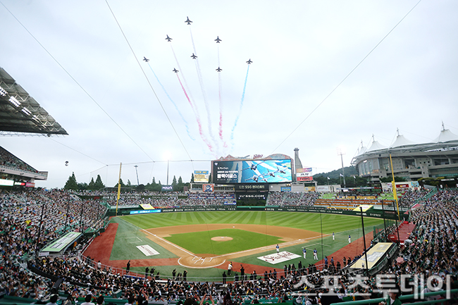 ƯÈ÷ 12ÀÏ KBO ¿Ã½ºÅ¸Àü Çà»ç ´çÀÏ¿¡´Â °ø±º ±º¾Ç´ëÀÇ ¾Ö±¹°¡ ¿¬ÁÖ¿Í ÇÔ²² ´ëÇѹα¹ °ø±º Ư¼öºñÇàÆÀ 'ºí·¢À̱۽º'ÀÇ ¿¡¾î¼î°¡ ÆîÃÄÁö¸ç, 5ȸ ¸» Á¾·á ÈÄ Å¬¸®´×ŸÀÓ¿¡´Â 'CGVŬ¸®´×ŸÀÓ¼î'°¡ ÁøÇàµÈ´Ù.