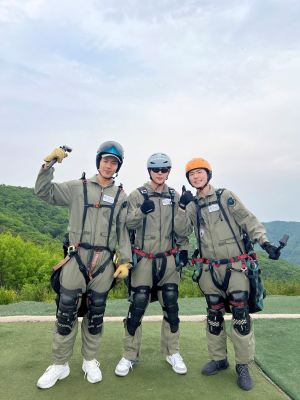 ¸¶Ä§³» Ȱ°øÀå¿¡ µµÂøÇÑ ¼Å´©, ±âÇö, ÁÖÇåÀº °Åħ¾øÀÌ ÇÏ´ÃÀ» ÇâÇØ ¶Ù¾ú´Ù. ¼¼ »ç¶÷Àº óÀ½ ´À³¢´Â Äè°¨¿¡ ¿¬½Å °¨ÅºÇß°í, "±âºÐ ÃÖ°í´Ù" "ÀÌ°É ¿Ö ±×µ¿¾È ¾È ÅÀÁö"¶ó¸ç »ó°ø¿¡¼ÀÇ Èú¸µÀ» ¸¸³£Çß´Ù. À̾î "»ç¶ûÇÑ´Ù ¸óº£º£(ÆÒ´ý¸í)"¶ó°í ¿ÜÄ¡¸ç ÆÒ »ç¶ûÀ» µå·¯³½ µÚ °¢ÀÚÀÇ ¹æ½ÄÀ¸·Î Â¥¸´ÇÑ ºñÇàÀ» Áñ°å´Ù. ¼¼ »ç¶÷ÀÌ ÇÏ´ÃÀ» ³¯°í ÀÖ´Ù´Â ¼Ò½Ä¿¡ ¹ÎÇõ°ú Çü¿øÀº ȯȣÇÏ¸ç »çÁøÀ» Âï¾î ÇÔ²² Ưº°ÇÑ Ãß¾ïÀ» ³²±â¸ç Àǹ̸¦ ´õÇß´Ù.