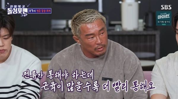 ¾ó¸¶³ª ¾ÆÇÁ³Ä´Â Áú¹®¿¡ Ãß¼ºÈÆÀº "»ç¶÷¸¶´Ù ´Ù¸¥µ¥ ±ÙÀ° ÀÖ´Â »ç¶÷ÀÌ ´õ ¾ÆÇÁ´Ù. Áö¹æ ¸¹Àº »ç¶÷Àº ´ú ¾ÆÇÁ´Ù. Àü±â°¡ ±ÙÀ°ÀÌ ¸¹À»¼ö·Ï »¡¸® È帥´Ù. Áö¹æÀº Àü±â°¡ Àß ¾È ÅëÇÑ´Ù"¶ó°í ¼³¸íÇß´Ù. ±×·¯¸é¼ "Àú´Â ±ÙÀ°ÀÌ ÀÖ´Â ÆíÀ̶ó (Å×ÀÌÀú °ÇÀ») ¸Â¾Ò´Âµ¥ ¿Í... ²Ä¦À» ¸ø Çß´Ù"¶ó¸ç Ä¡¸¦ ¶³¾ú´Ù.