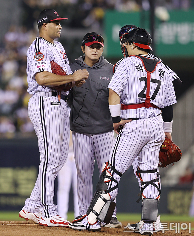 [½ºÆ÷Ã÷Åõµ¥ÀÌ ±Ç±¤ÀÏ ±âÀÚ] 2025 ½ÅÇÑÀºÇà SOL Bank KBO¸®±× NC ´ÙÀ̳뽺¿Í LG Æ®À©½ºÀÇ °æ±â°¡ 1ÀÏ ¼¿ï Àá½Ç¾ß±¸Àå¿¡¼ ¿·È´Ù. LG Ä¡¸®³ë½º°¡ 4ȸÃÊ À§±â»óȲ¿¡ ±è±¤»ï Åõ¼öÄÚÄ¡¿Í ¹Úµ¿¿øÀÌ ¹æ¹®ÇØ À̾߱⸦ Çϰí ÀÖ´Ù. 2025.10.01.