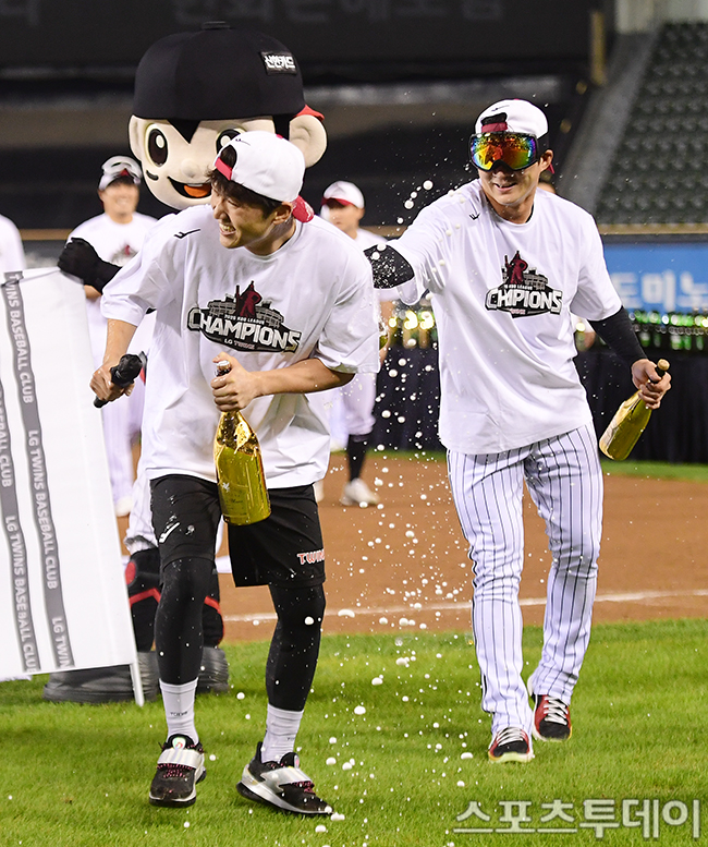 ¿ì½Â ÈÄ ¹ÚÇØ¹ÎÀ» Æ÷ÇÔÇÑ LGÀÇ ¼±¼ö´Ü°ú ÄÚĪ ½ºÅÂÇÁ´Â °æ±âÀå¿¡ ¸ð¿© ¿ì½Â Çà»ç¸¦ Áñ°å´Ù.
