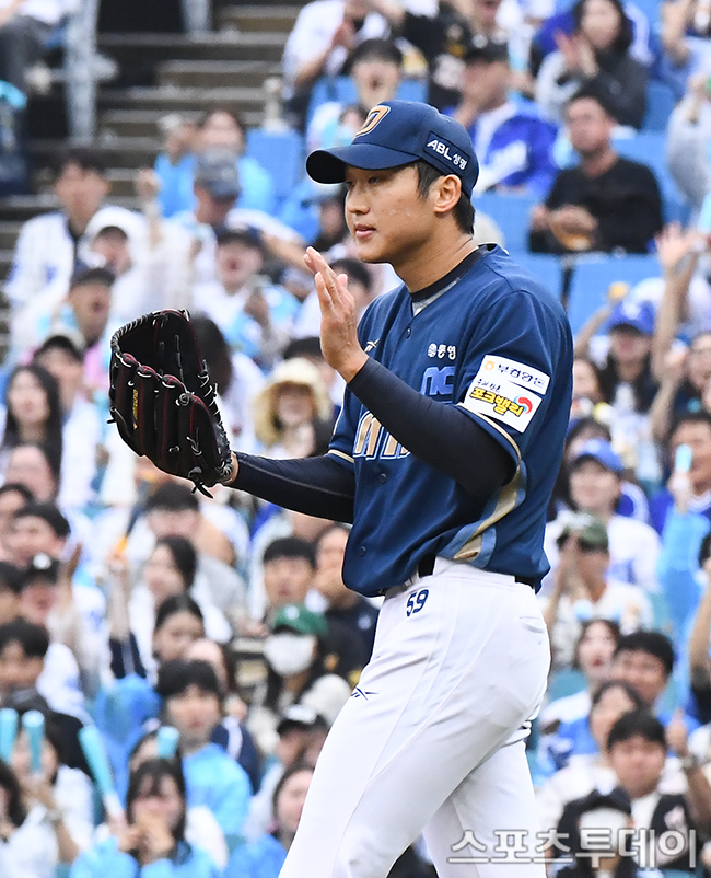 [´ë±¸=½ºÆ÷Ã÷Åõµ¥ÀÌ ÆØÇöÁØ ±âÀÚ] 6ÀÏ ´ë±¸ »ï¼º¶óÀÌ¿ÂÁîÆÄÅ©¿¡¼ ¿¸° 2025 KBO¸®±× Æ÷½ºÆ®½ÃÁð NC ´ÙÀ̳뽺¿Í »ï¼º ¶óÀÌ¿ÂÁîÀÇ ¿ÍÀϵåÄ«µå(WC) °áÁ¤Àü 1Â÷Àü, NC ¼±¹ßÅõ¼ö ±¸Ã¢¸ð°¡ 3·ç¼ö ±èÈÖÁýÀÇ È£¼öºñ¿¡ ¹Ú¼öÄ¡°í ÀÖ´Ù. 2025.10.06.