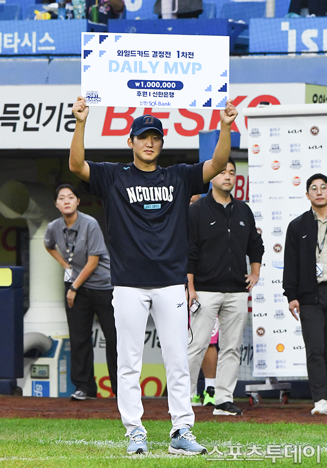 [´ë±¸=½ºÆ÷Ã÷Åõµ¥ÀÌ ÆØÇöÁØ ±âÀÚ] 6ÀÏ ´ë±¸ »ï¼º¶óÀÌ¿ÂÁîÆÄÅ©¿¡¼ ¿¸° 2025 KBO¸®±× Æ÷½ºÆ®½ÃÁð NC ´ÙÀ̳뽺¿Í »ï¼º ¶óÀÌ¿ÂÁîÀÇ ¿ÍÀϵåÄ«µå(WC) °áÁ¤Àü 1Â÷Àü, NC°¡ 4-1·Î ½Â¸®Çß´Ù. MVP¿¡ »ÌÈù NC ±¸Ã¢¸ð°¡ Æ÷Á ÃëÇϰí ÀÖ´Ù. 2025.10.06.