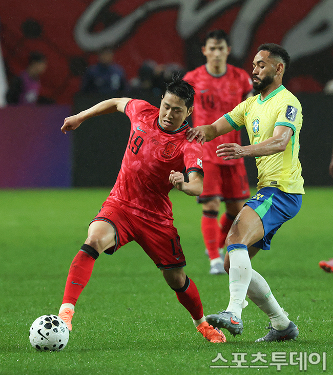 [½ºÆ÷Ã÷Åõµ¥ÀÌ ÆØÇöÁØ ±âÀÚ] 10ÀÏ ¼¿ï¿ùµåÄŰæ±âÀå¿¡¼ ¿¸° Ã౸±¹°¡´ëÇ¥ÆÀ Çѱ¹°ú ºê¶óÁúÀÇ Ä£¼±°æ±â, À̰ÀÎÀÌ °ø°ÝÇϰí ÀÖ´Ù. 2025.10.10.