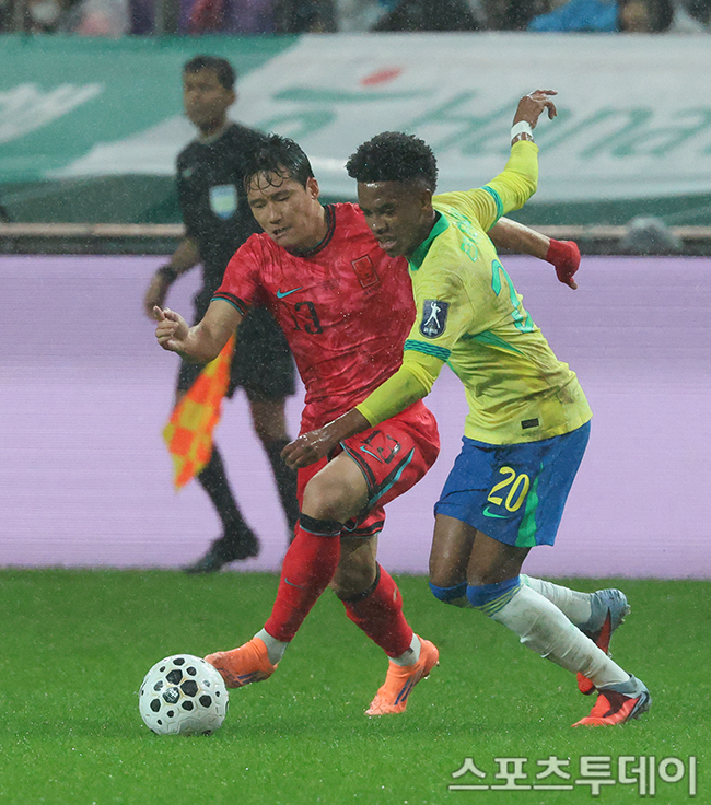 [½ºÆ÷Ã÷Åõµ¥ÀÌ ÆØÇöÁØ ±âÀÚ] 10ÀÏ ¼¿ï¿ùµåÄŰæ±âÀå¿¡¼ ¿¸° Ã౸±¹°¡´ëÇ¥ÆÀ Çѱ¹°ú ºê¶óÁúÀÇ Ä£¼±°æ±â, Çѱ¹ ÀÌż®ÀÌ ºê¶óÁú À̽ºÅ×¹ß Àª¸®¾Ó°ú ¸ö½Î¿òÀ» Çϰí ÀÖ´Ù. 2025.10.10.