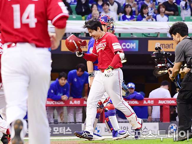 [ÀÎõ=½ºÆ÷Ã÷Åõµ¥ÀÌ ±Ç±¤ÀÏ ±âÀÚ] 2025 ½ÅÇÑÀºÇà SOL Bank KBO¸®±× Æ÷½ºÆ®½ÃÁð ÁØÇ÷¹ÀÌ¿ÀÇÁ 2Â÷Àü »ï¼º ¶óÀÌ¿ÂÁî¿Í SSG ·£´õ½ºÀÇ °æ±â°¡ 11ÀÏ ÀÎõSSG ·£´õ½ºÇʵ忡¼­ ¿­·È´Ù. SSG ±è¼º¿íÀÌ 9ȸ¸» ³¡³»±â Ȩ·±À» Ä¡°í ÀÖ´Ù. 2025.10.11.