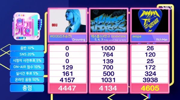 12ÀÏ ¹æ¼ÛµÈ SBS 'ÀαⰡ¿ä' 1À§ Èĺ¸¿¡´Â ¿ìÁî 'µå¶ó¿ì´×'(Drowning), ¼¼ºìƾ ¿¡½ºÄò½ºX¹Î±Ô '5, 4, 3', ¿¡½ºÆÄ '¸®Ä¡ ¸Ç'(Rich Man)ÀÌ ¿Ã¶ú´Ù.