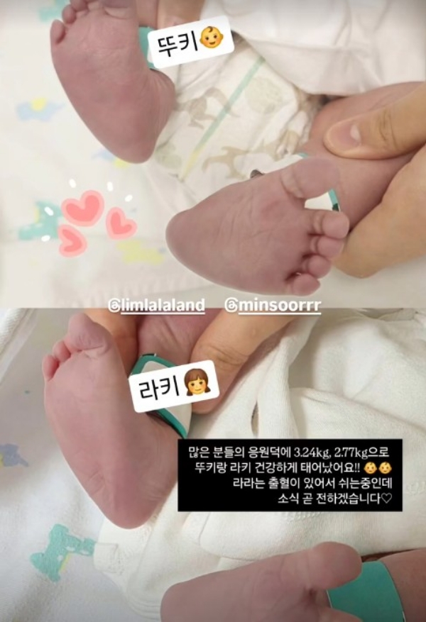 ÀÌÈÄ '¿£Á¶ÀÌÄ¿ÇÃ' SNS ½ºÅ丮¿¡´Â ¶ó۶ÑŰ(½ÖµÕÀÌ Å¸í)ÀÇ ¹ß »çÁø°ú ÇÔ²² "¸¹Àº ºÐµéÀÇ ÀÀ¿ø ´ö¿¡ 3.24kg, 2.77kgÀ¸·Î ¶Ñ۶û ¶óŰ °Ç°ÇÏ°Ô Å¾´Ù. ¶ó¶ó´Â ÃâÇ÷ÀÌ ÀÖ¾î¼ ½¬´Â ÁßÀε¥ ¼Ò½Ä °ð ÀüÇϰڴÙ"¶ó´Â ±ÛÀÌ ¿Ã¶ó¿Ô´Ù.