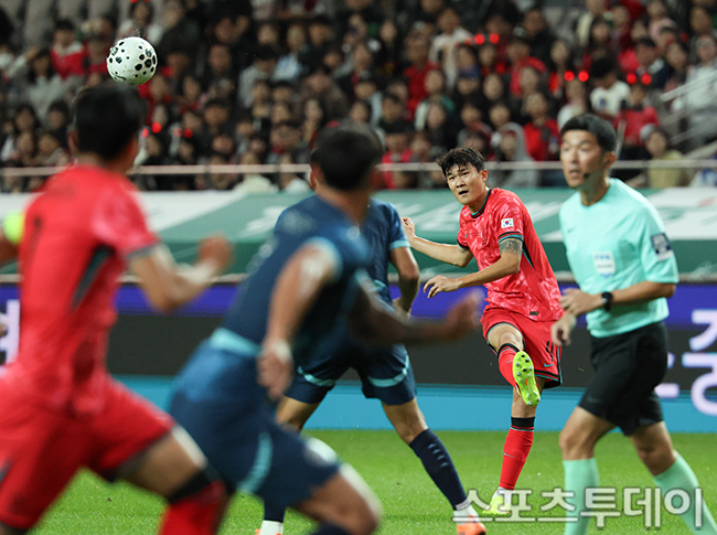 [½ºÆ÷Ã÷Åõµ¥ÀÌ ÆØÇöÁØ ±âÀÚ] 14ÀÏ ¼¿ï¿ùµåÄŰæ±âÀå¿¡¼ ¿¸° Ã౸ ±¹°¡´ëÇ¥ÆÀ Çѱ¹°ú ÆÄ¶ó°úÀÌÀÇ Ä£¼±°æ±â, Çѱ¹ ±è¹ÎÀç°¡ ÆÐ½ºÇϰí ÀÖ´Ù. 2025.10.14.