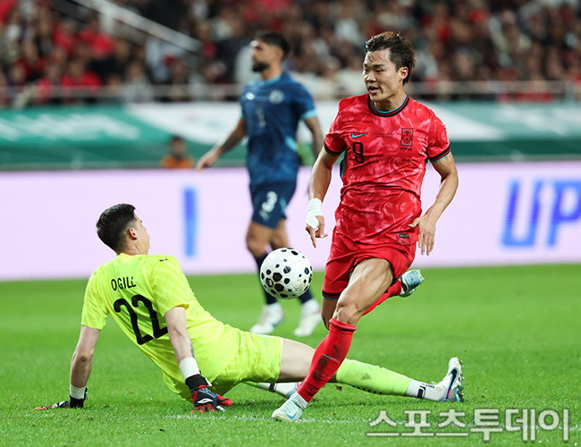 [½ºÆ÷Ã÷Åõµ¥ÀÌ ÆØÇöÁØ ±âÀÚ] 14ÀÏ ¼¿ï¿ùµåÄŰæ±âÀå¿¡¼ ¿¸° Ã౸ ±¹°¡´ëÇ¥ÆÀ Çѱ¹°ú ÆÄ¶ó°úÀÌÀÇ Ä£¼±°æ±â, Çѱ¹ ¿ÀÇö±Ô°¡ °ñÀ» ³Ö°í ÀÖ´Ù. 2025.10.14.