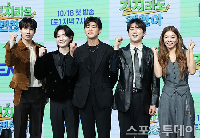 [½ºÆ÷Ã÷Åõµ¥ÀÌ ÆØÇöÁØ ±âÀÚ] Ã⿬ÀÚ ¼ÕÅÂÁø, ±è¿ëºó, ¹ÚÁöÇö, ÁøÇàÀÚ ±è¿øÈÆ, ¼ÛÇØ³ª°¡ 16ÀÏ ¼¿ï »ó¾Ïµ¿ ¼îÅ·ÄÉÀÌÆË¼¾ÅÍ¿¡¼ ¿¸° ENA ¿¹´É '±æÄ¡¶óµµ ±¦Âú¾Æ' Á¦ÀÛ¹ßǥȸ¿¡¼ Æ÷ÅäŸÀÓÀ» °®°í ÀÖ´Ù.