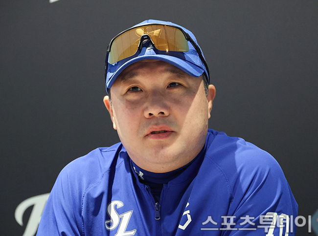 [´ëÀü=½ºÆ÷Ã÷Åõµ¥ÀÌ ÆØÇöÁØ ±âÀÚ] »ï¼º ¹ÚÁø¸¸ °¨µ¶ÀÌ 17ÀÏ ´ëÀüÇÑÈ»ý¸íº¼ÆÄÅ©¿¡¼ ¿¸®´Â 2025 KBO¸®±× Æ÷½ºÆ®½ÃÁð Ç÷¹ÀÌ¿ÀÇÁ 1Â÷ÀüÀ» ¾ÕµÎ°í ÀÎÅͺ並 Çϰí ÀÖ´Ù. 2025.10.17.