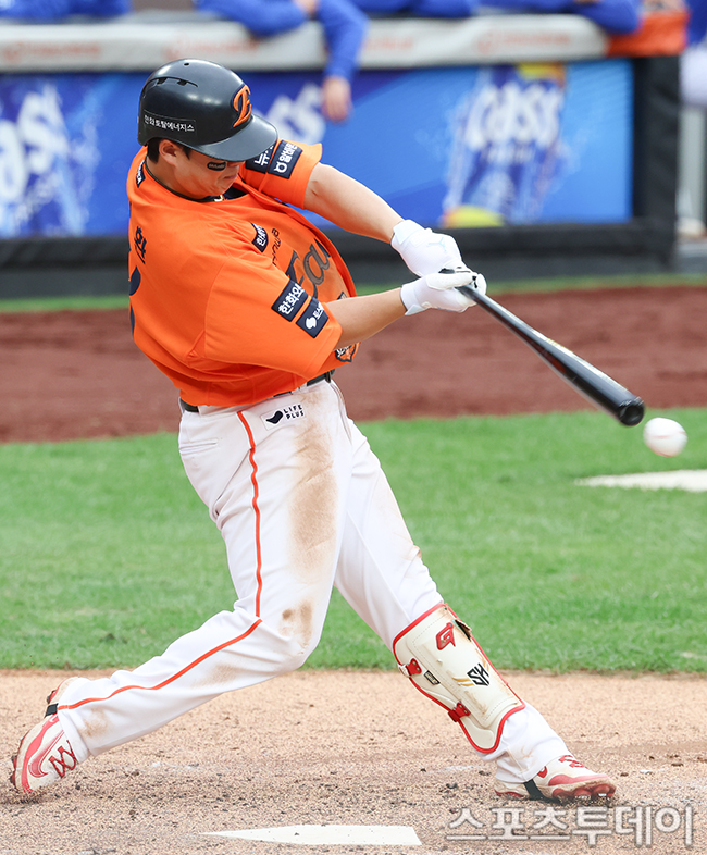 [´ëÀü=½ºÆ÷Ã÷Åõµ¥ÀÌ ÆØÇöÁØ ±âÀÚ] 18ÀÏ ´ëÀüÇÑÈ»ý¸íº¼ÆÄÅ©¿¡¼ ¿¸° 2025 KBO¸®±× Æ÷½ºÆ®½ÃÁð Ç÷¹ÀÌ¿ÀÇÁ »ï¼º ¶óÀÌ¿ÂÁî¿Í ÇÑÈ À̱۽ºÀÇ 1Â÷Àü, 4ȸ¸» 1»ç 1,3·ç ÇÑÈ ³ë½ÃȯÀÌ º´»ìŸ¸¦ ¸¸µå´Â 3·ç ¶¥º¼À» ³¯¸®°í ÀÖ´Ù. 2025.10.18.