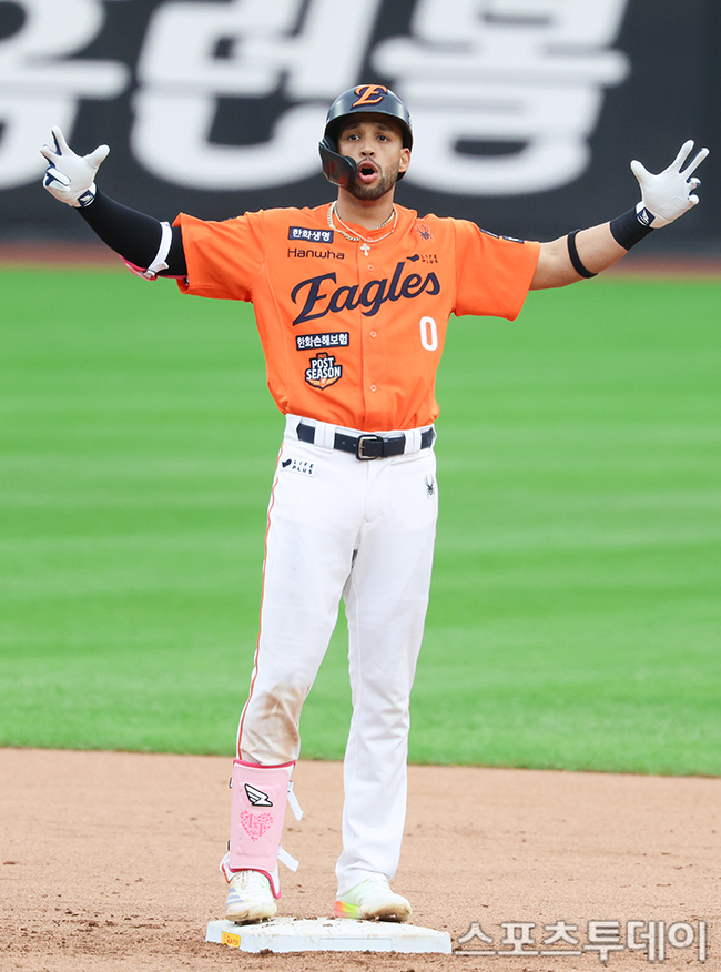 [´ëÀü=½ºÆ÷Ã÷Åõµ¥ÀÌ ÆØÇöÁØ ±âÀÚ] 18ÀÏ ´ëÀüÇÑÈ­»ý¸íº¼ÆÄÅ©¿¡¼­ ¿­¸° 2025 KBO¸®±× Æ÷½ºÆ®½ÃÁð Ç÷¹ÀÌ¿ÀÇÁ »ï¼º ¶óÀÌ¿ÂÁî¿Í ÇÑÈ­ À̱۽ºÀÇ 1Â÷Àü, 6ȸ¸» ¹«»ç 2·ç ¿ìÀü ¾ÈŸ¸¦ ³¯¸° ÇÑÈ­ ¸®º£¶óÅä°¡ ¿ìÀͼö ½ÇÃ¥À¸·Î 2·ç±îÁö Áø·çÇϰí ÀÖ´Ù. 2025.10.18.