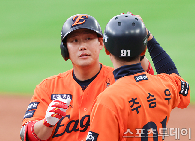 [´ëÀü=½ºÆ÷Ã÷Åõµ¥ÀÌ ÆØÇöÁØ ±âÀÚ] 19ÀÏ ´ëÀüÇÑÈ­»ý¸íº¼ÆÄÅ©¿¡¼­ ¿­¸° 2025 KBO¸®±× Æ÷½ºÆ®½ÃÁð Ç÷¹ÀÌ¿ÀÇÁ »ï¼º ¶óÀÌ¿ÂÁî¿Í ÇÑÈ­ À̱۽ºÀÇ 2Â÷Àü, 2ȸ¸» 1»ç ÇÑÈ­ ÇÏÁÖ¼®ÀÌ ¾ÈŸ¸¦ Ä¡°í ÀÖ´Ù. 2025.10.19.