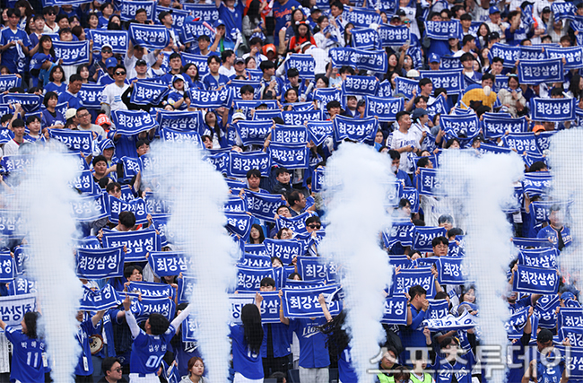[´ëÀü=½ºÆ÷Ã÷Åõµ¥ÀÌ ÆØÇöÁØ ±âÀÚ] 19ÀÏ ´ëÀüÇÑÈ»ý¸íº¼ÆÄÅ©¿¡¼ ¿¸° 2025 KBO¸®±× Æ÷½ºÆ®½ÃÁð Ç÷¹ÀÌ¿ÀÇÁ »ï¼º ¶óÀÌ¿ÂÁî¿Í ÇÑÈ À̱۽ºÀÇ 2Â÷Àü, »ï¼º ÆÒµéÀÌ ÀÀ¿øÀ» Çϰí ÀÖ´Ù. 2025.10.19.