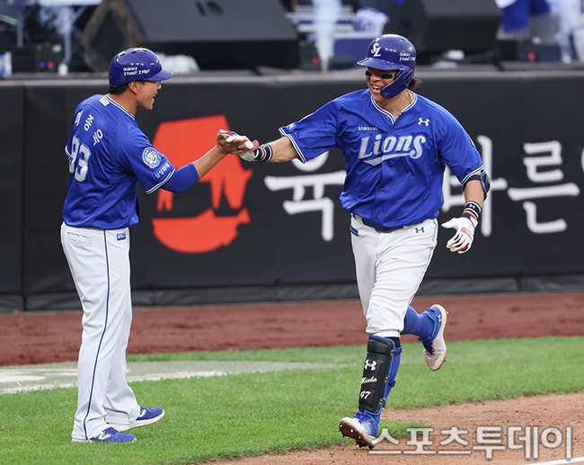 [´ëÀü=½ºÆ÷Ã÷Åõµ¥ÀÌ ÆØÇöÁØ ±âÀÚ] 19ÀÏ ´ëÀüÇÑÈ­»ý¸íº¼ÆÄÅ©¿¡¼­ ¿­¸° 2025 KBO¸®±× Æ÷½ºÆ®½ÃÁð Ç÷¹ÀÌ¿ÀÇÁ »ï¼º ¶óÀÌ¿ÂÁî¿Í ÇÑÈ­ À̱۽ºÀÇ 2Â÷Àü, 9ȸÃÊ 2»ç 1·ç »ï¼º °­¹ÎÈ£°¡ Ȩ·±À» ³¯¸®°í ÀÖ´Ù. 2025.10.19.