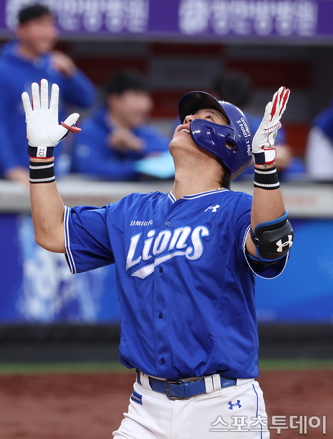 [´ëÀü=½ºÆ÷Ã÷Åõµ¥ÀÌ ÆØÇöÁØ ±âÀÚ] 19ÀÏ ´ëÀüÇÑÈ­»ý¸íº¼ÆÄÅ©¿¡¼­ ¿­¸° 2025 KBO¸®±× Æ÷½ºÆ®½ÃÁð Ç÷¹ÀÌ¿ÀÇÁ »ï¼º ¶óÀÌ¿ÂÁî¿Í ÇÑÈ­ À̱۽ºÀÇ 2Â÷Àü, 9ȸÃÊ 2»ç 1·ç »ï¼º °­¹ÎÈ£°¡ Ȩ·±À» ³¯¸®°í ÀÖ´Ù. 2025.10.19.