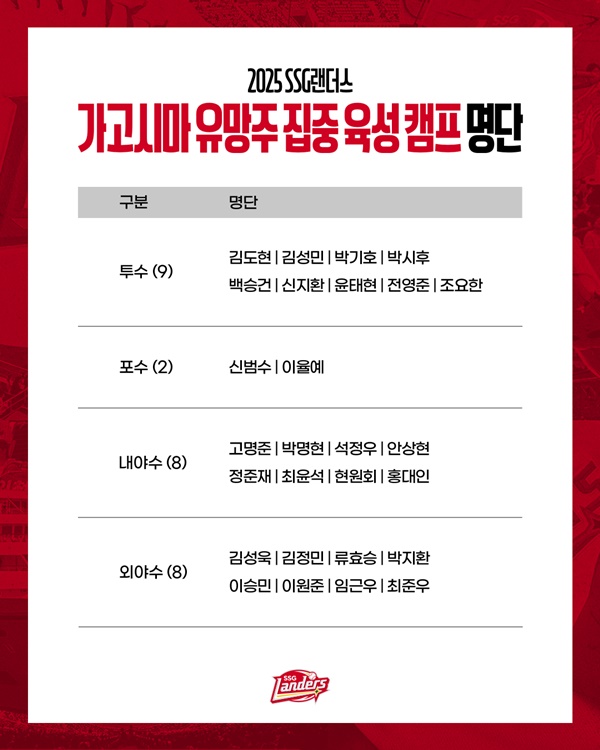 SSG´Â À̹ø °¡°í½Ã¸¶ Ä·ÇÁ¸¦ ±âÁ¡À¸·Î, ºñ½ÃÁð Àü ±â°£¿¡ °ÉÄ£ À°¼º ÇÁ·Î±×·¥À» °¡µ¿ÇÑ´Ù. 2026 ½ÅÀÎ ¼±¼ö´ÜÀº SSGǻó½ºÇʵå ÈÆ·ÃÁ¶¿¡ ÇÕ·ùÇØ ±âÃÊ Ã¼·Â¡¤¸ö ¸¸µé±â Áß½ÉÀÇ ±âÃÊ °È °úÁ¤À» ¹â°í, ±âÁ¸ ¼±¼öµéÀº ÀÎõSSG·£´õ½ºÇʵå¿Í SSGǻó½ºÇʵ忡¼ °³Àκ° ¸ÂÃã ÈÆ·Ã ¹× °úÁ¦ Áß½ÉÇü ¸¶¹«¸® ÇÁ·Î±×·¥À» ÁøÇàÇÑ´Ù.