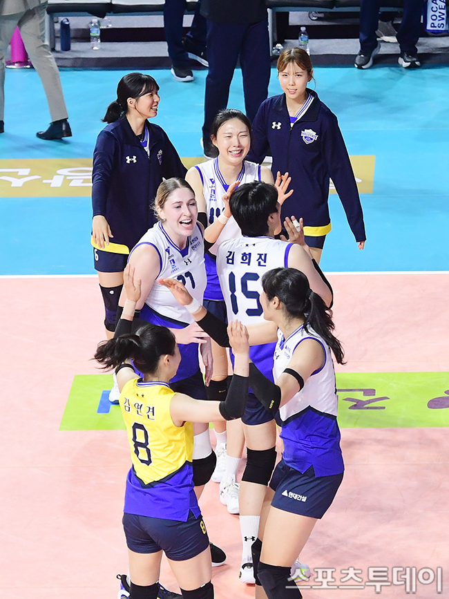 Çö´ë°Ç¼³ÀÌ Èï±¹»ý¸íÀ» »ó´ë·Î ¼¼Æ®½ºÄÚ¾î 3-1·Î ½Â¸®Çϰí ÀÖ´Ù. 2025.10.22.