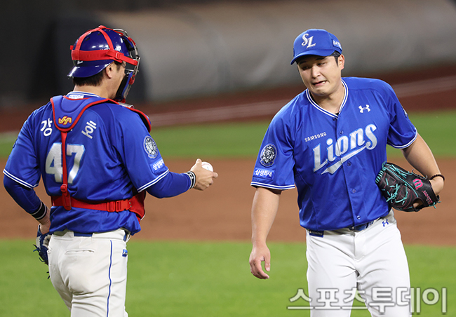 [´ëÀü=½ºÆ÷Ã÷Åõµ¥ÀÌ ÆØÇöÁØ ±âÀÚ] 24ÀÏ ´ëÀüÇÑÈ»ý¸íº¼ÆÄÅ©¿¡¼ ¿¸° 2025 KBO¸®±× Æ÷½ºÆ®½ÃÁð »ï¼º ¶óÀÌ¿ÂÁî¿Í ÇÑÈ À̱۽ºÀÇ Ç÷¹ÀÌ¿ÀÇÁ 5Â÷Àü, 1ȸ¸» »ï¼º Æ÷¼ö °¹ÎÈ£°¡ ¸¶¿îµå¸¦ ¹æ¹®ÇØ ÃÖ¿øÅÂ¿Í À̾߱⸦ Çϰí ÀÖ´Ù. 2025.10.24.