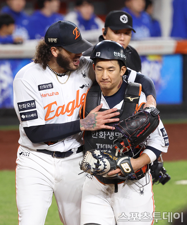 [´ëÀü=½ºÆ÷Ã÷Åõµ¥ÀÌ ÆØÇöÁØ ±âÀÚ] 24ÀÏ ´ëÀüÇÑÈ»ý¸íº¼ÆÄÅ©¿¡¼ ¿¸° 2025 KBO¸®±× Æ÷½ºÆ®½ÃÁð »ï¼º ¶óÀÌ¿ÂÁî¿Í ÇÑÈ À̱۽ºÀÇ Ç÷¹ÀÌ¿ÀÇÁ 5Â÷Àü, 3ȸÃÊ 2»ç 1,2·ç ÇÑÈ ÃÖÀçÈÆÀÌ »ï¼º ±èÅÂÈÆÀÇ Æ÷¼ö ¶¥º¼À» ó¸®Çϸç ÀÌ´×À» ³¡³»ÀÚ Æù¼¼°¡ ÃÖÀçÈÆÀ» ¾È°í ±â»µÇϰí ÀÖ´Ù. 2025.10.24.