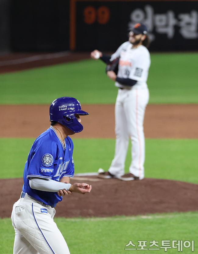 [´ëÀü=½ºÆ÷Ã÷Åõµ¥ÀÌ ÆØÇöÁØ ±âÀÚ] 24ÀÏ ´ëÀüÇÑÈ­»ý¸íº¼ÆÄÅ©¿¡¼­ ¿­¸° 2025 KBO¸®±× Æ÷½ºÆ®½ÃÁð »ï¼º ¶óÀÌ¿ÂÁî¿Í ÇÑÈ­ À̱۽ºÀÇ Ç÷¹ÀÌ¿ÀÇÁ 5Â÷Àü, 3ȸÃÊ 2»ç 1·ç »ï¼º ±è¿µ¿õÀ» ÀÚµ¿ °íÀÇ4±¸·Î Ãâ·ç½Ã۰í ÀÖ´Ù. 2025.10.24.