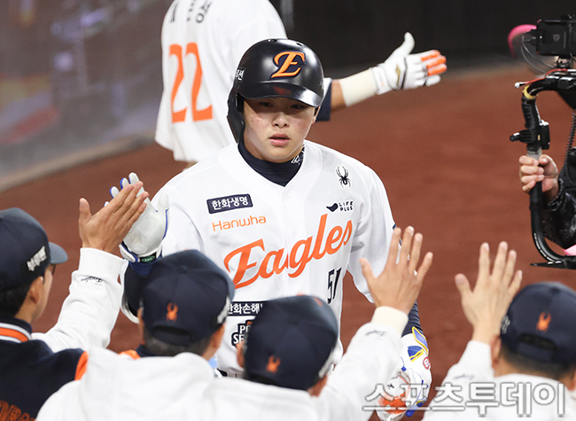 [´ëÀü=½ºÆ÷Ã÷Åõµ¥ÀÌ ÆØÇöÁØ ±âÀÚ] 24ÀÏ ´ëÀüÇÑÈ­»ý¸íº¼ÆÄÅ©¿¡¼­ ¿­¸° 2025 KBO¸®±× Æ÷½ºÆ®½ÃÁð »ï¼º ¶óÀÌ¿ÂÁî¿Í ÇÑÈ­ À̱۽ºÀÇ Ç÷¹ÀÌ¿ÀÇÁ 5Â÷Àü, 8ȸ¸» 1»ç 1·ç ÇÑÈ­ ¹®ÇöºóÀÌ È¨·±À» ³¯¸®°í ÀÖ´Ù. 2025.10.24.