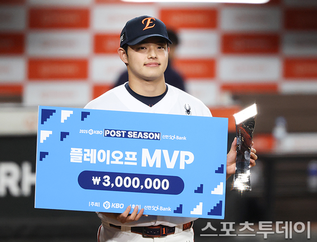 [´ëÀü=½ºÆ÷Ã÷Åõµ¥ÀÌ ÆØÇöÁØ ±âÀÚ] 24ÀÏ ´ëÀüÇÑÈ»ý¸íº¼ÆÄÅ©¿¡¼ ¿¸° 2025 KBO¸®±× Æ÷½ºÆ®½ÃÁð »ï¼º ¶óÀÌ¿ÂÁî¿Í ÇÑÈ À̱۽ºÀÇ Ç÷¹ÀÌ¿ÀÇÁ 5Â÷Àü, ÇÑȰ¡ 11-2·Î ½Â¸®Çϸç Çѱ¹½Ã¸®Áî¿¡ ÁøÃâÇß´Ù. ÇÑÈ ¹®µ¿ÁÖ°¡ Ç÷¹ÀÌ¿ÀÇÁ MVP¸¦ ¹Þ°í ÀÖ´Ù. 2025.10.24.