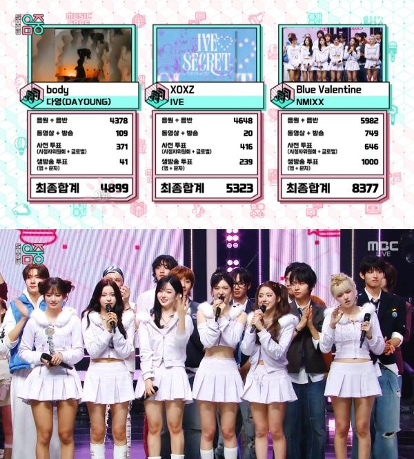 25ÀÏ ¹æ¼ÛµÈ MBC '¼î! À½¾ÇÁß½É' 1À§ Èĺ¸¿¡´Â ´Ù¿µ '¹Ùµð'(Body), ¾ÆÀ̺ê 'XOXZ', ¿£¹Í½º 'ºí·ç ¹ë·±Å¸ÀÎ'(Blue Valentine)ÀÌ ¿Ã¶ú´Ù.