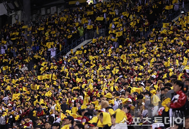 [½ºÆ÷Ã÷Åõµ¥ÀÌ ÆØÇöÁØ ±âÀÚ] 27ÀÏ ¼¿ï Àá½Ç¾ß±¸Àå¿¡¼ ¿¸° 2025 KBO¸®±× LG Æ®À©½º¿Í ÇÑÈ À̱۽ºÀÇ Çѱ¹½Ã¸®Áî 2Â÷Àü, LG ³ë¶õ¼ö°Ç ÀÀ¿ø´ÜÀÌ ÀÀ¿øÀ» Çϰí ÀÖ´Ù. 2025.10.27.