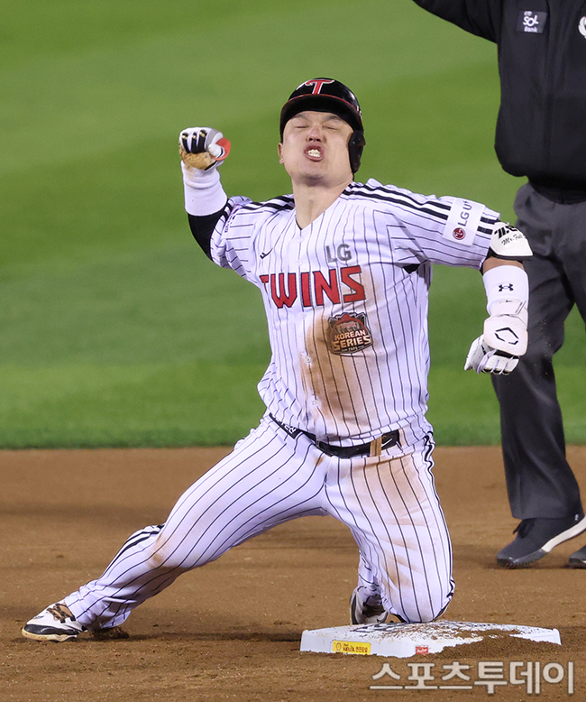 [½ºÆ÷Ã÷Åõµ¥ÀÌ ÆØÇöÁØ ±âÀÚ] 27ÀÏ ¼¿ï Àá½Ç¾ß±¸Àå¿¡¼ ¿¸° 2025 KBO¸®±× LG Æ®À©½º¿Í ÇÑÈ À̱۽ºÀÇ Çѱ¹½Ã¸®Áî 2Â÷Àü, 2ȸ¸» ¹«»ç ¸¸·ç LG ¹Úµ¿¿øÀÌ 2ŸÁ¡ Àû½ÃŸ¸¦ ³¯¸®°í ÀÖ´Ù. 2025.10.27.