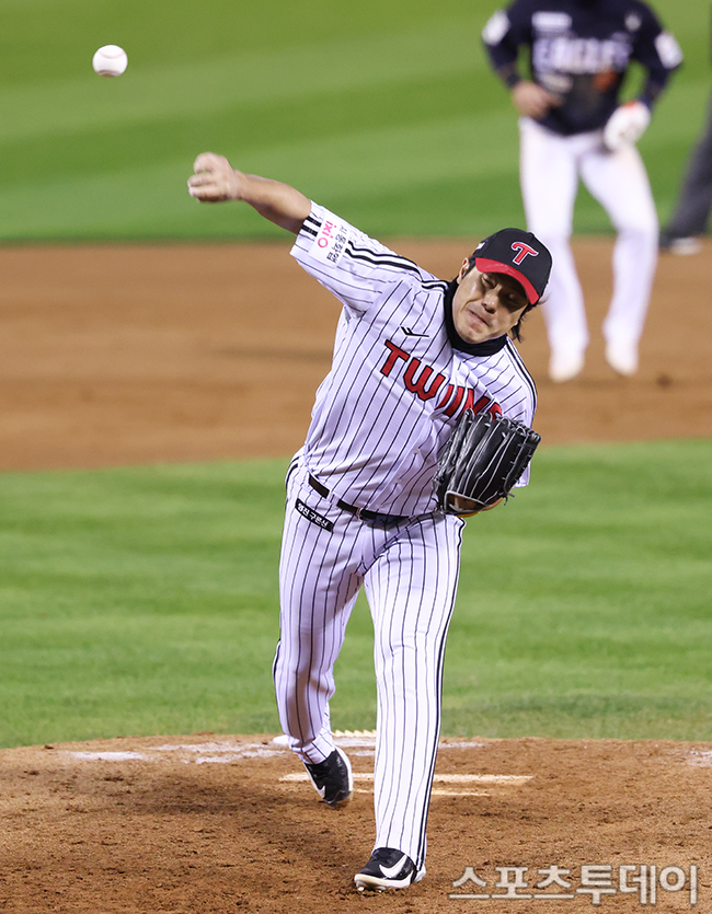[½ºÆ÷Ã÷Åõµ¥ÀÌ ÆØÇöÁØ ±âÀÚ] 27ÀÏ ¼¿ï Àá½Ç¾ß±¸Àå¿¡¼ ¿¸° 2025 KBO¸®±× LG Æ®À©½º¿Í ÇÑÈ À̱۽ºÀÇ Çѱ¹½Ã¸®Áî 2Â÷Àü, 4ȸÃÊ 2»ç ¸¸·ç LG ±èÁø¼ºÀÌ ¿ªÅõÇϰí ÀÖ´Ù. 2025.10.27.