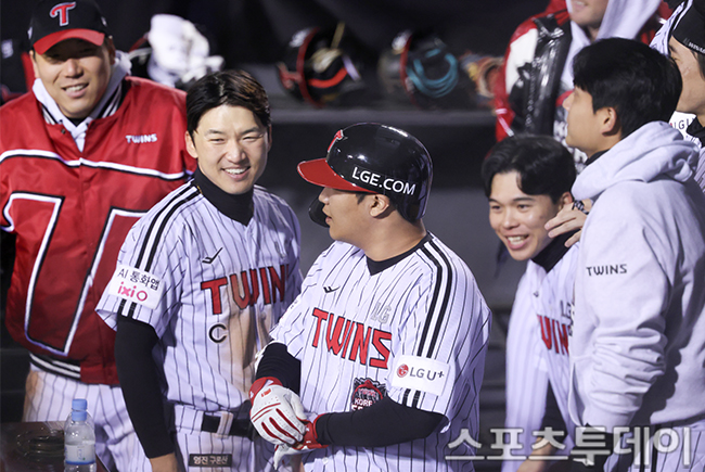 [½ºÆ÷Ã÷Åõµ¥ÀÌ ÆØÇöÁØ ±âÀÚ] 27ÀÏ ¼¿ï Àá½Ç¾ß±¸Àå¿¡¼ ¿¸° 2025 KBO¸®±× LG Æ®À©½º¿Í ÇÑÈ À̱۽ºÀÇ Çѱ¹½Ã¸®Áî 2Â÷Àü, 8ȸ¸» 2»ç 1·ç Ȩ·±À» Ä£ LG ¹®º¸°æÀÌ µ¿·áµéÀÇ ÃàÇϸ¦ ¹Þ°í ÀÖ´Ù. 2025.10.27.