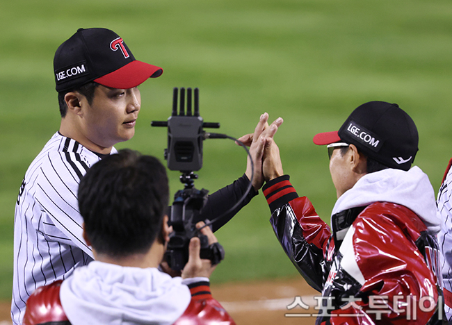 [½ºÆ÷Ã÷Åõµ¥ÀÌ ÆØÇöÁØ ±âÀÚ] 27ÀÏ ¼¿ï Àá½Ç¾ß±¸Àå¿¡¼ ¿¸° 2025 KBO¸®±× LG Æ®À©½º¿Í ÇÑÈ À̱۽ºÀÇ Çѱ¹½Ã¸®Áî 2Â÷Àü, 13-5·Î LG°¡ ½Â¸®Çß´Ù. ¹®º¸°æÀÌ ¿°°æ¿± °¨µ¶°ú ±â»ÝÀ» ³ª´©°í ÀÖ´Ù. 2025.10.27.