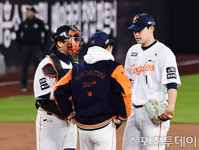 [´ëÀü=½ºÆ÷Ã÷Åõµ¥ÀÌ ±Ç±¤ÀÏ ±âÀÚ] 2025 ½ÅÇÑÀºÇà SOL Bank KBO¸®±× Çѱ¹½Ã¸®Áî 5Â÷Àü LGÆ®À©½º¿Í ÇÑÈ À̱۽ºÀÇ °æ±â°¡ 31ÀÏ ´ëÀüÇÑÈ»ý¸í º¼ÆÄÅ©¿¡¼ ¿·È´Ù. ÇÑÈ ¹®µ¿ÁÖ°¡ 1ȸÃÊ ¾ç»ó¹® ÄÚÄ¡¿Í ´ëȸ¦ ³ª´©°í Çϰí ÀÖ´Ù. 2025.10.31.