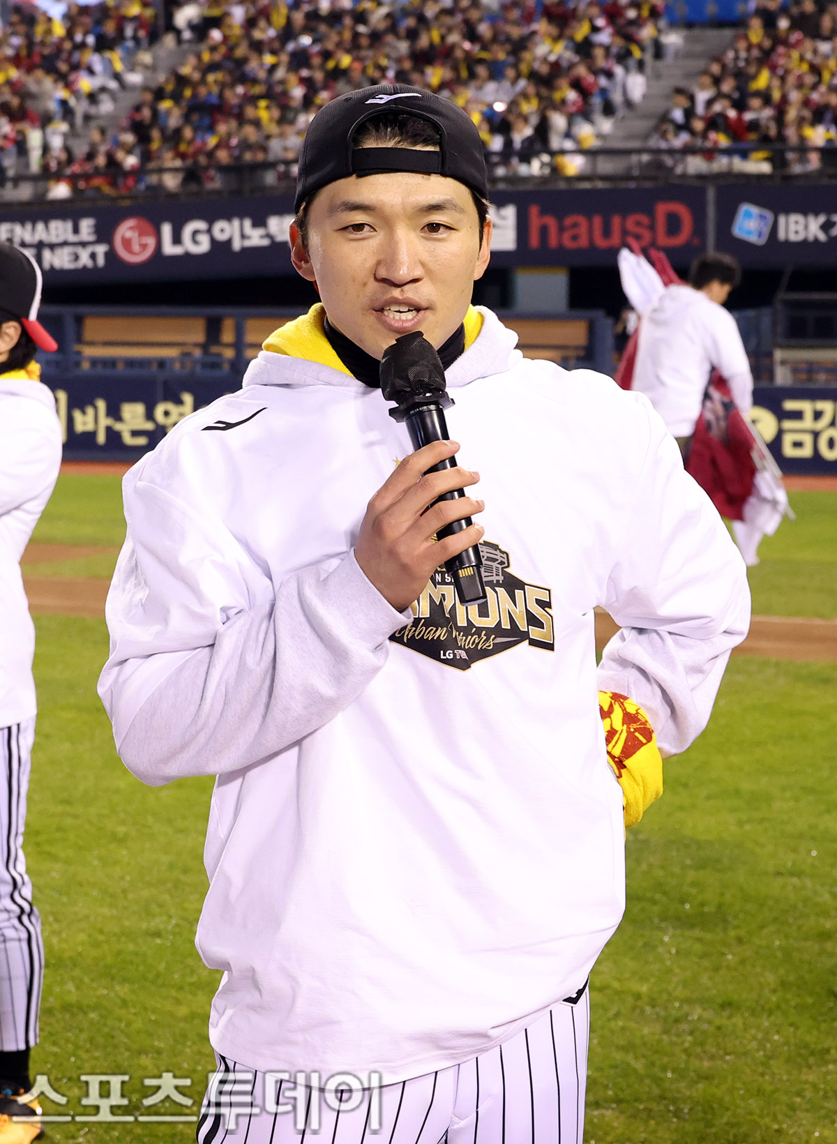 À̳¯ LGÆ®À©½º ¹ÚÇØ¹Î ¼±¼ö°¡ ÀÎÅͺ並 Çϰí ÀÖ´Ù. 2025.11.01