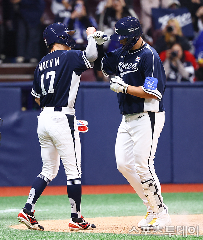 [½ºÆ÷Ã÷Åõµ¥ÀÌ ÆØÇöÁØ ±âÀÚ] 9ÀÏ ¼¿ï °íô½ºÄ«À̵¼¿¡¼ ¿¸° '2025 NAVER K-BASEBALL SERIES' ´ëÇѹα¹°ú üÄÚÀÇ Æò°¡Àü, 9ȸÃÊ ¹«»ç 1·ç Ȩ·±À» Ä£ ÀÌÀç¿øÀÌ ÁÖÀÚ ¹ÚÇØ¹Î°ú ±â»ÝÀ» ³ª´©°í ÀÖ´Ù. 2025.11.09.