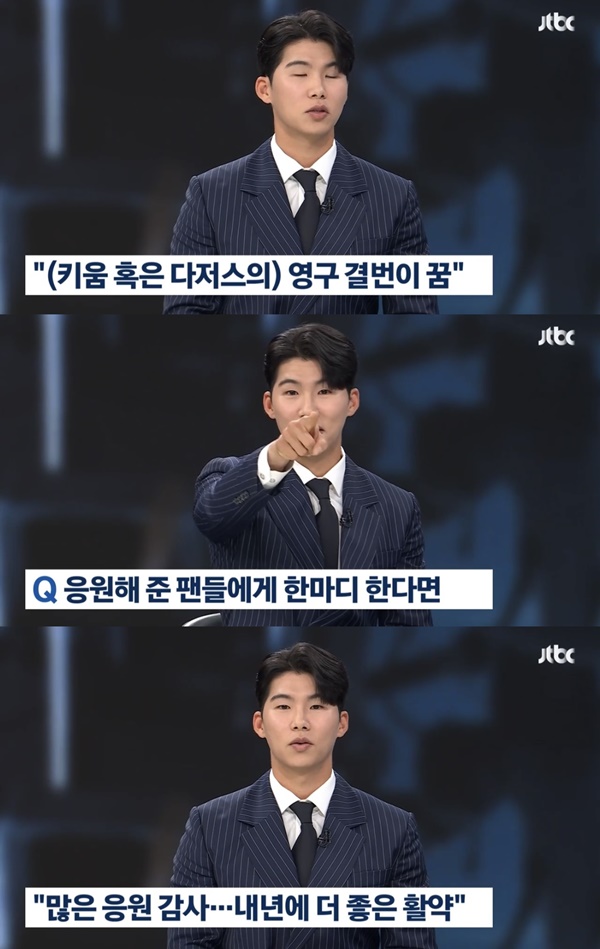 ÃÖÁ¾ ²Þ¿¡ ´ëÇØ ¹¯ÀÚ ±×´Â "¿µ±¸°á¹øÀÌ ¾ß±¸ ¼±¼ö·Î¼ ÃÖÁ¾ ²ÞÀÌ´Ù. ³Ê¹« ¸ÚÀÖÁö ¾Ê¾Æ. ²À ÇÏ°í ½Í´Ù"¸ç "¿ÃÇØ ÀßÇÏÁø ¸øÇßÁö¸¸ ¸¹ÀÌ ÀÀ¿øÇØ Áּż °¨»çÇÏ´Ù. ³»³â¿¡ ´õ ÀßÇØ¼ ¾ß±¸Àå¿¡¼ ¸¹ÀÌ ¾ó±¼ º¸¿©µå¸± ¼ö ÀÖ´Â ¼±¼ö´Ù µÇµµ·Ï ÇϰڴÙ"°í °¢¿À¸¦ ¹àÇû´Ù.