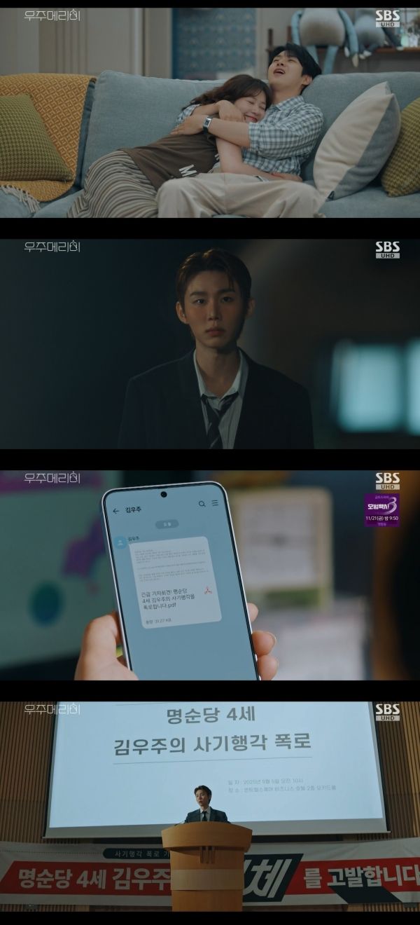 14ÀÏ ¹æ¼ÛµÈ SBS ±ÝÅäµå¶ó¸¶ '¿ìÁÖ¸Þ¸®¹Ì' 11ȸ¿¡´Â ÀåÇѱ¸(±è¿µ¹Î)°¡ »çÇüÀ» ¼±°í¹Þ´Â ¸ð½À°ú, ±è¿ìÁÖ(ÃÖ¿ì½Ä)¿¡°Ô ¶Ç ´Ù¸¥ À§±â°¡ ã¾Æ¿À´Â °úÁ¤ÀÌ ±×·ÁÁ³´Ù.