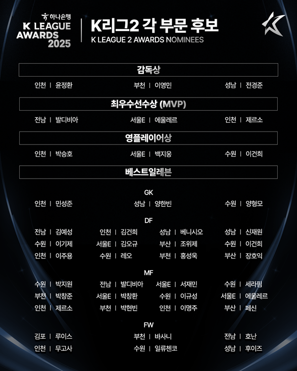 Çѱ¹ÇÁ·ÎÃ౸¿¬¸Í(ÃÑÀç ±Ç¿À°©, ÀÌÇÏ '¿¬¸Í')Àº ¡®ÇϳªÀºÇà K¸®±× 2025 ´ë»ó ½Ã»ó½Ä'À» ¾ÕµÎ°í, 19ÀÏ K¸®±× °³Àλó Èĺ¸¼±Á¤À§¿øÈ¸(ÀÌÇÏ 'À§¿øÈ¸')¸¦ ¿¾î, ¿Ã ½ÃÁð K¸®±×1, 2 ÃÖ¿ì¼ö°¨µ¶»ó, ÃÖ¿ì¼ö¼±¼ö»ó(MVP), ¿µÇ÷¹À̾î»ó, º£½ºÆ®ÀÏ·¹ºì ºÎ¹®ÀÇ 3¹è¼ö È常¦ ¼±Á¤Çß´Ù.