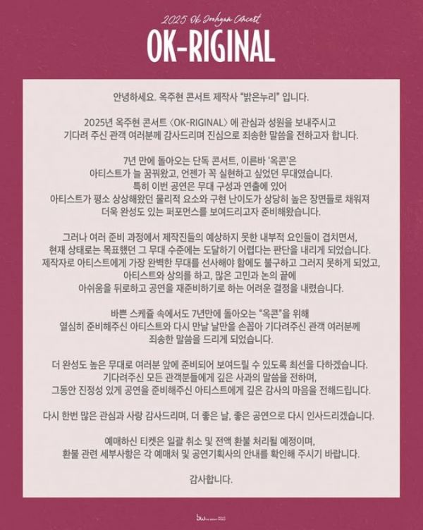 ¿ÁÁÖÇöÀº 12¿ù 6ÀÏ, 7ÀÏ ´Üµ¶ ÄܼƮ '¿ÀÄÉÀÌ-¿À¸®Áö³Î(OK-RIGINAL)'À» ÁøÇàÇÒ ¿¹Á¤À̾ú´Ù.