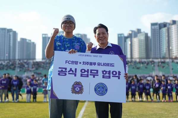 Ä¡ÁÖ¹°·ç À¯³ªÀÌÆ¼µå À̵¿ÈÆ ±¸´ÜÁÖ´Â "FC¾È¾ç°ú ÀÌ·¸°Ô MOU¸¦ ü°áÇÒ ¼ö ÀÖ¾î ¿µ±¤ÀÌ´Ù. ¸¹Àº ºÐ¾ß¿¡¼ FC¾È¾ç°ú Çù·ÂÇÒ ¼ö ÀÖ¾úÀ¸¸é ÁÁ°Ú´Ù. FC¾È¾ç¿¡¼ ¾È ¾²´Â ¹°Ç°À̾ ¿ì¸®ÇÑÅ×´Â Å« µµ¿òÀÌ µÈ´Ù. ´Ù½Ã ÇÑ ¹ø °¨»çµå¸°´Ù"°í ¹àÇû´Ù.