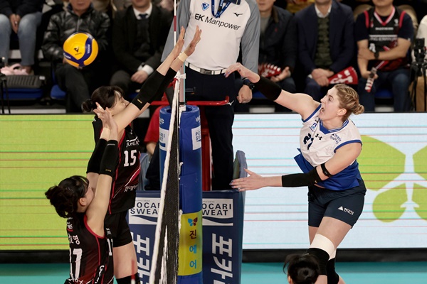 KB¼ÕÇØº¸Çèµµ ÀÓ¼ºÁøÀ» Áß½ÉÀ¸·Î ¼±¼öµéÀÌ ºÐÀüÇϸç Ãß°Ý¿¡ ³ª¼¹´Ù. ÇÏÁö¸¸ ·¯¼¿ÀÌ Äü¿ÀÇ µæÁ¡À¸·Î ¸ÅÄ¡ Æ÷ÀÎÆ®¸¦ ¸¸µé¾ú°í, ÀÌÈÄ ¼ºê ¿¡À̽º·Î Æ®¸®ÇÃÅ©¶ó¿îÀ» ¿Ï¼ºÇϸç 25-22·Î 3¼¼Æ®¸¦ ¸¶¹«¸®Çß´Ù.