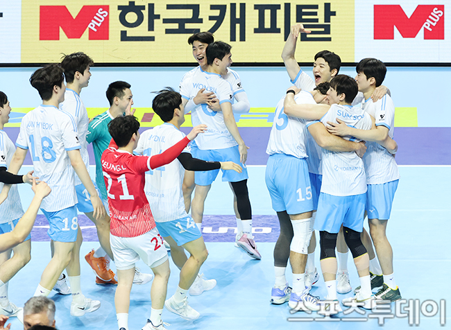 ´ëÇÑÇ×°øÀÌ KB¼ÕÇØº¸ÇèÀ» »ó´ë·Î ¼¼Æ®½ºÄÚ¾î 3-0 ½Â¸®¸¦ Çϰí ÀÖ´Ù. 2025.11.25.