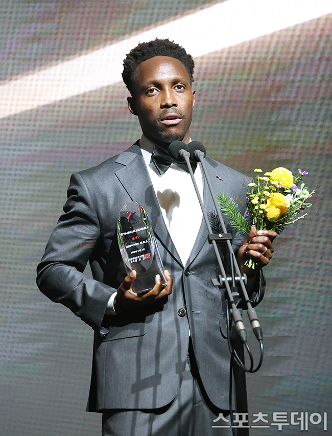 ÀÎõÀ¯³ªÀÌÆ¼µå Á¦¸£¼Ò°¡ 2025 ÇϳªÀºÇà K¸®±×2 MVPÀ» ¼ö»óÇϰí ÀÖ´Ù. 2025.12.01.