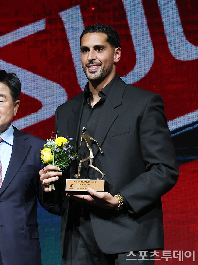 ¼ö¿øFC ½Î¹ÚÀÌ 2025 ÇϳªÀºÇà K¸®±×1 º£½ºÆ®11 FWºÎºÐ»óÀ» ¹Þ°í ÀÖ´Ù. 2025.12.01.