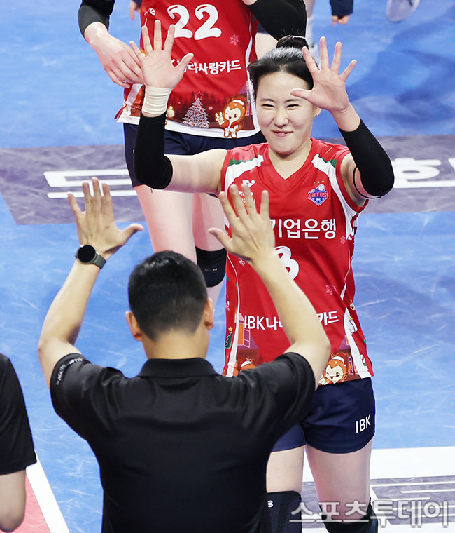 IBK±â¾÷ÀºÇàÀÌ Á¤°üÀåÀ» »ó´ë·Î 3-0 ½Â¸®¸¦ Çϰí ÀÖ´Ù. 2025.12.04.