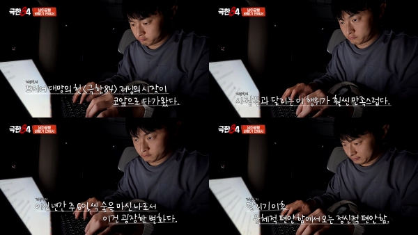 5ÀÏ °ø°³µÈ MBC '±ØÇÑ84'ÀÇ ¹Ì°ø°³ ¿µ»ó¿¡´Â ³²¾ÆÇÁ¸®Ä«°øÈ­±¹ 'ºò5 ¸¶¶óÅæ'À» ¾ÕµÎ°í ºñÇà±â ¾È¿¡¼­ Á¶¿ëÈ÷ ±ÛÀ» ¾²´Â ±â¾È84ÀÇ ÁøÁöÇÑ ¸ð½ÀÀÌ ´ã°å´Ù. Àλý ù Æ®·¹ÀÏ ¸¶¶óÅæÀ» À§ÇØ ³¸¼± ´ë·úÀ» ÇâÇØ ¶°³ª´Â ±â¾È84ÀÇ ¼ÖÁ÷ÇÑ ¸¶À½°ú ´Þ¸®±â¸¦ ÅëÇØ ã¾Æ¿Â º¯È­°¡ °í½º¶õÈ÷ ´ã°Ü ½ÃûÀÚµéÀÇ °ü½ÉÀ» ²ø°í ÀÖ´Ù.